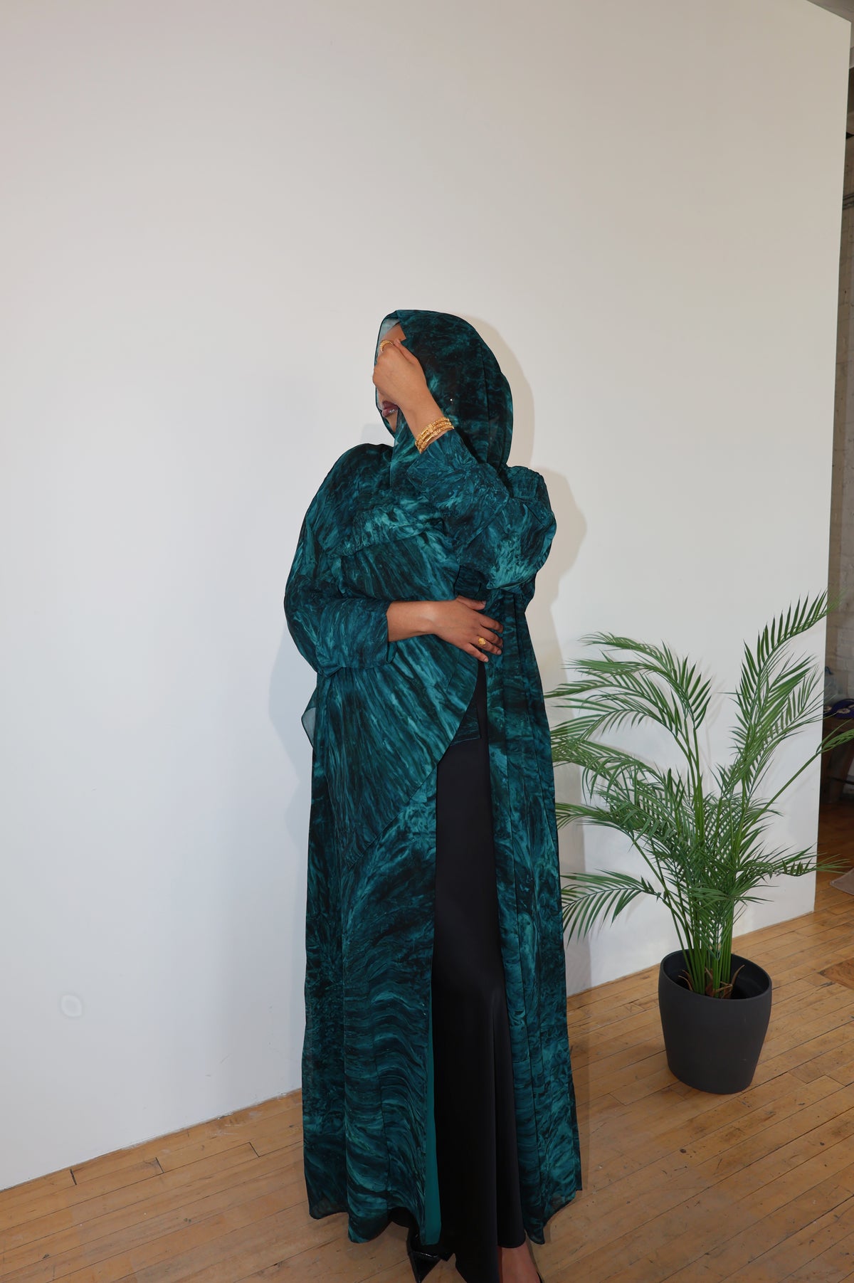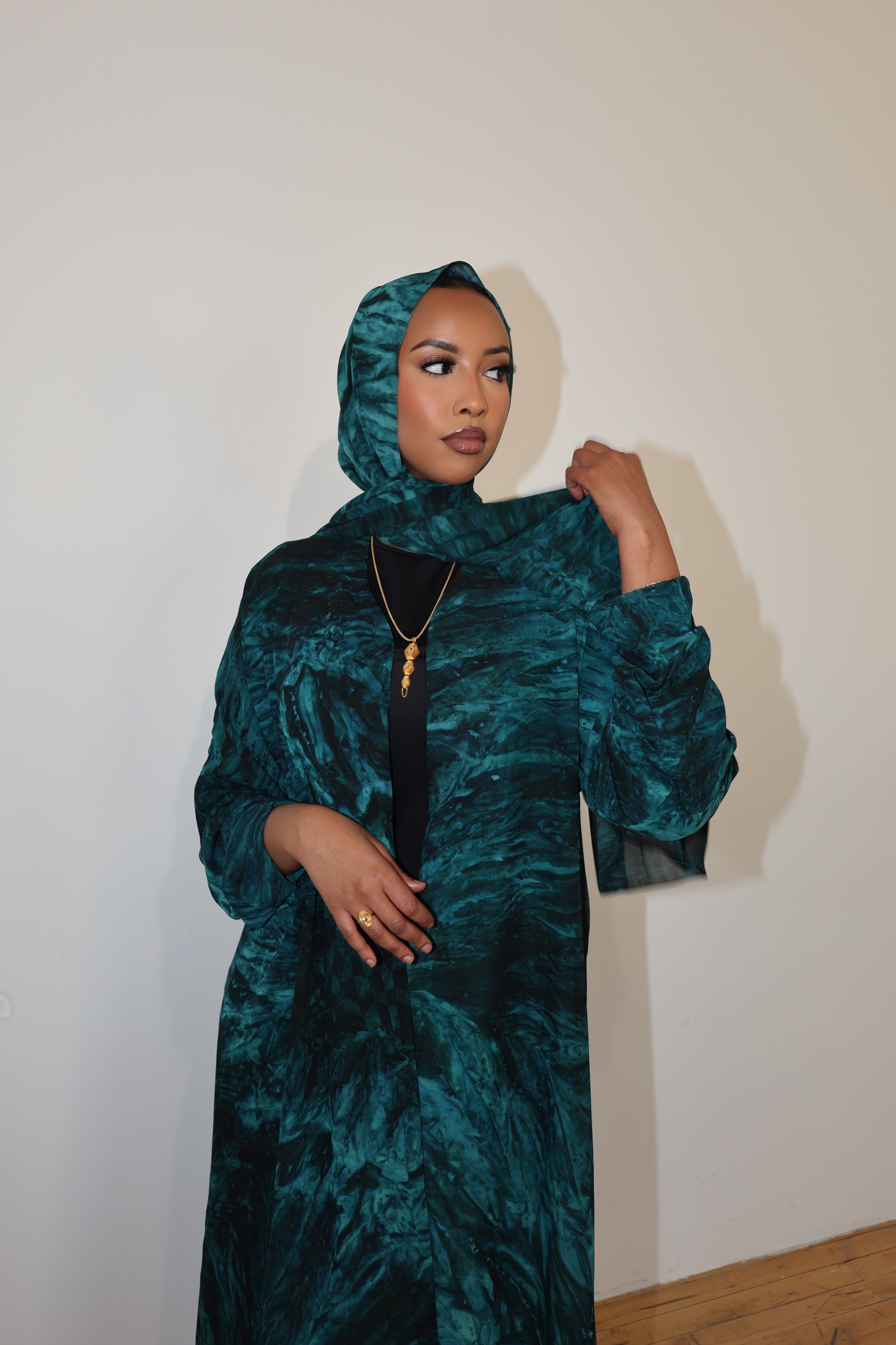 Our Emerald Printed Chiffon abaya features a vibrant, eye-catching design that adds a touch of elegance to your wardrobe. The lightweight, breathable fabric ensures comfort, while the bold print creates a stylish, modern look.